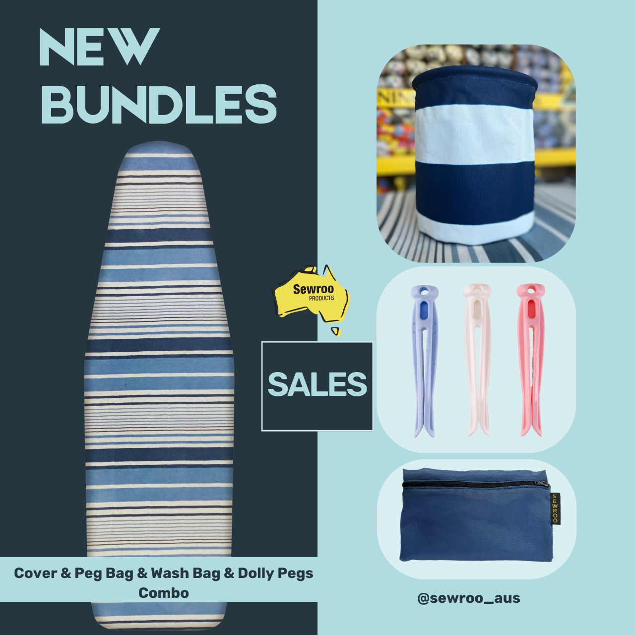 Signature Bundle: Ironing Board Cover + Peg Bag + Wash Bag (Std) +Dolly Pegs (3packs)